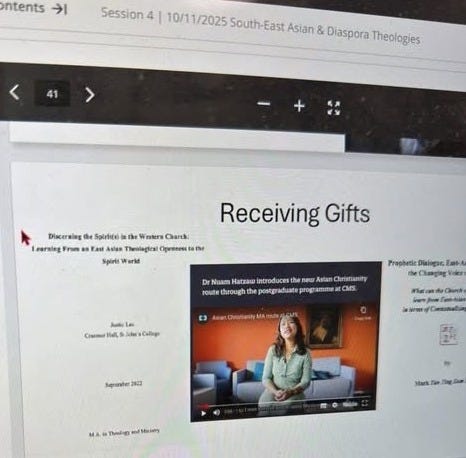 My dissertation received a shoutout in a ‘South-East Asian & Diaspora Theologies’ lecture on the Theologies of the Majority World module at Cranmer Hall: