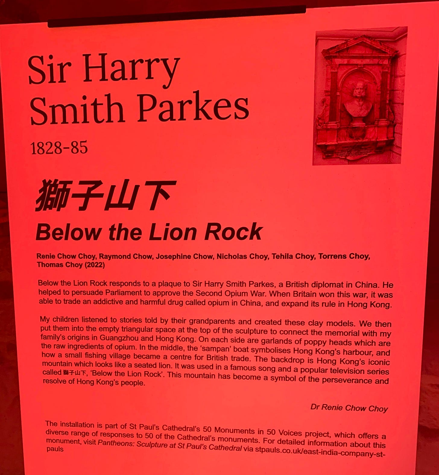 More special run-ins: I got to meet Renie Chow Choy in person and express my effusive thanks for the pivotal role her work, particularly Ancestral Feeling, has played in my life. It’s been fun stumbling across her public contributions around London, such as the following installation at St Paul’s Cathedral: